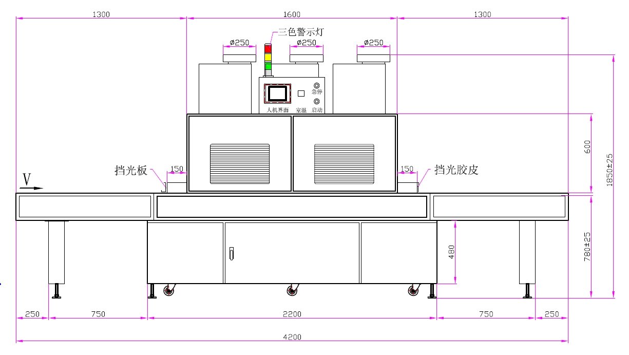 1.UV燈功率:12kw3支(UV鹵素燈)