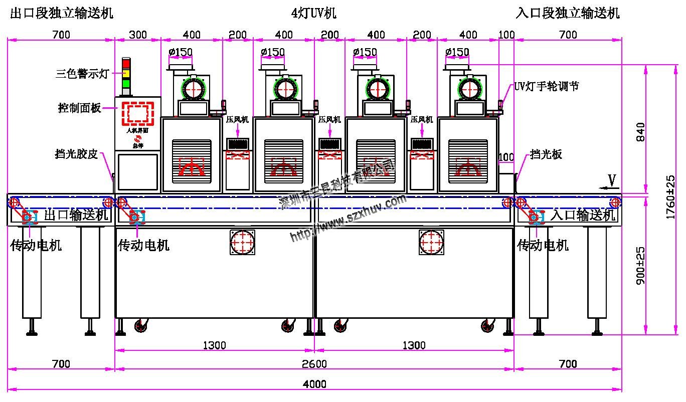 1、UV燈功率:6.0kw*4支(鹵素燈)