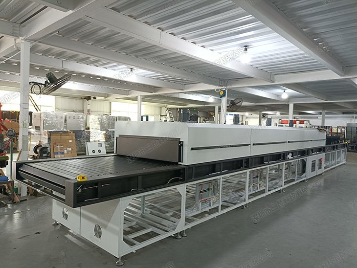 本智能新能源隧道爐采用不銹鋼內膽結構,配備48kW大功率加熱系統,四段獨立溫控可實現室溫至220℃精準調節。創新鏈板輸送設計(800mm寬)搭配變頻調速(0-1m/min)