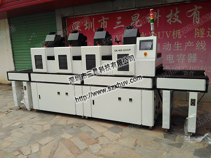 SK-406-500P型uv固化設備是由供料、輸送、固化、電氣控制等部分組成的uv固化制成套設備。uv固化設備鎮流器及機型性能提升采用國外進口