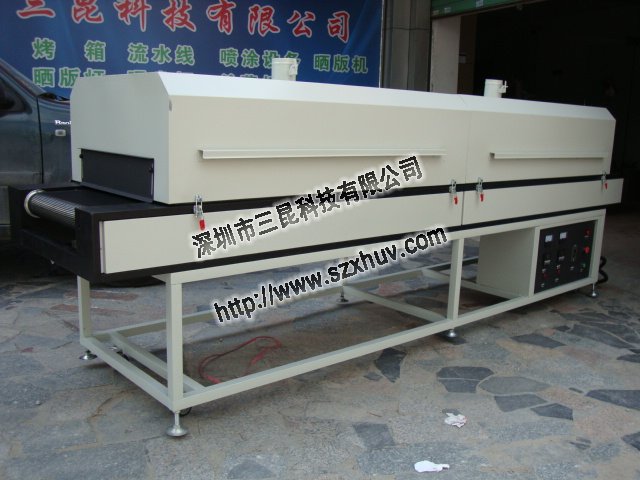 UV爐有手提式的、抽屜式的、隧道式的,只有隧道式的有傳送帶,是UV爐的一種,具體還要看UV燈的W數,如果UV燈超過3KW基本上就是隧道式的了。其他形式的扇熱打不到要求。