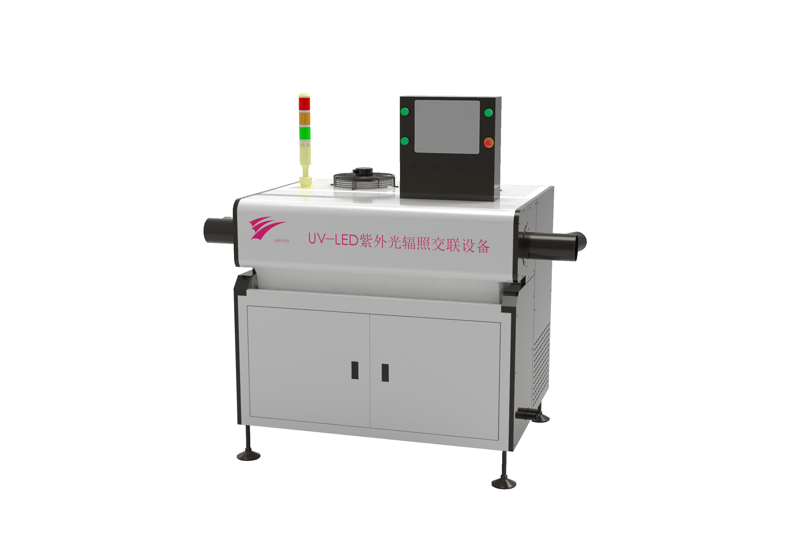 UV設備,纖維光固化機,LED輻照交聯設備,普通生產線改為“紫外線輻照UV交聯” 生產線只需要在原來的普通擠出生產線上增加“電纜交聯紫外線設備”,即可生產輕質交聯聚烯烴絕緣電線電纜產品。